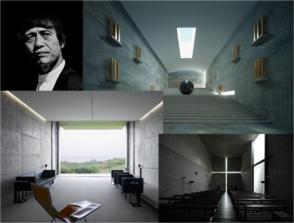 Одним из основоположников применения бетона в интерьере стал японский архитектор Тадао Андо. Бетон в его работах часто используется в чистом виде. Несмотря на легкость и кажущуюся простоту, это далеко не простая задача для строителя. Опалубка должна быть выполнена на очень высоком уровне, так как бетон не прощает ошибок. В этом случае, дальнейшая обработка бетонной поверхности складывается из заполнения отверстий от опалубки, легкого шлифования и нанесения гидрофобного состава для более легкого ухода.