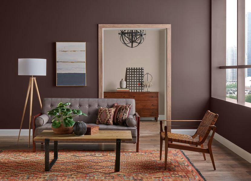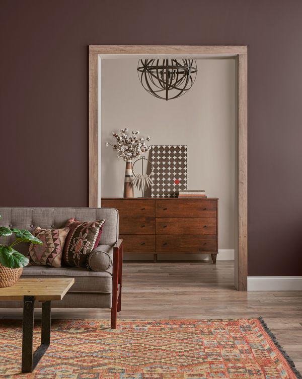 Сочетание цветов стен в интерьере, к нейтральному Black Bean SW 6006 (252-C5), который прекрасно сочетается с деревянными тонами и текстурированной мебелью подойдет универсальный серый Versatile Gray SW 6072 (242-C2) м оттенок хны Henna Shade SW 6326 (114-C5).