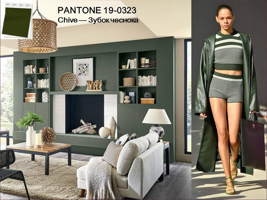 Загадочный, насыщенный, натуральный цвет PANTONE 19-0323 Chive — Зубок чеснока сильно притягивает, но ставит в тупик необычным названием. Не растёт у нас такого цвета чеснок, ни зубок и даже ни перо.