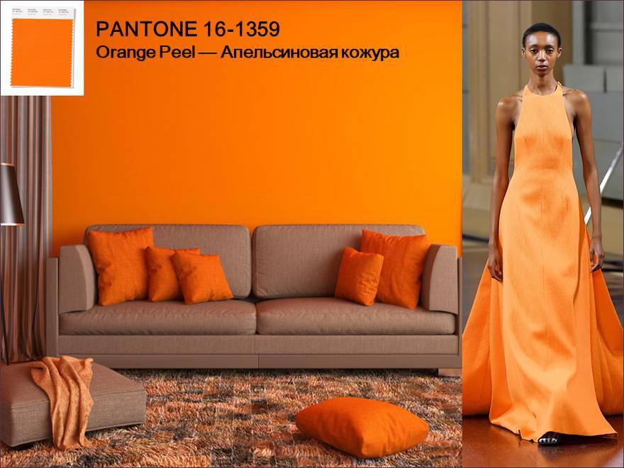 PANTONE 16−1359 Orange Peel — Апельсиновая кожура яркий и энергичный цвет, который по мнению компании придаёт характерный привкус всей палитре.