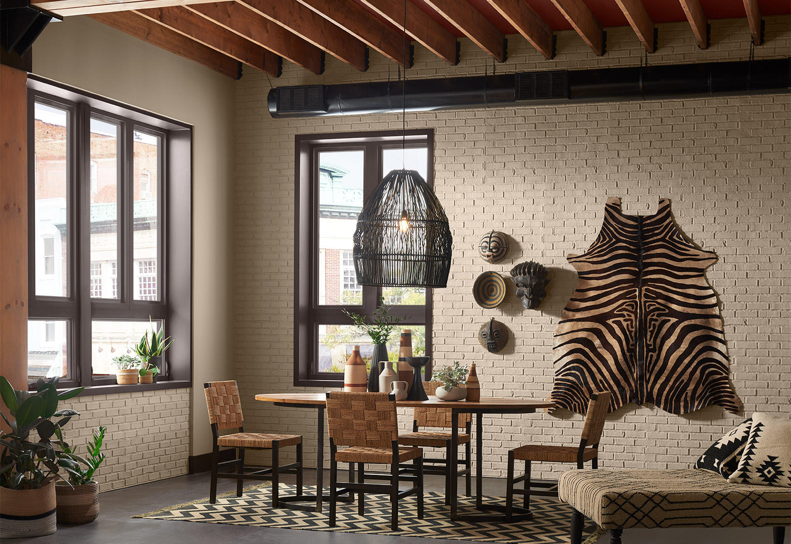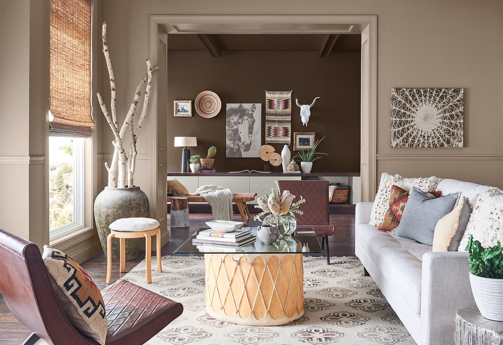 Синий горизонт, цвета равнин и пустыни, теплые оттенки этой палитры можно увидеть в глиняных каньонах, изношенных кожаных и тканых шерстяных одеялах настоящего Запада.
