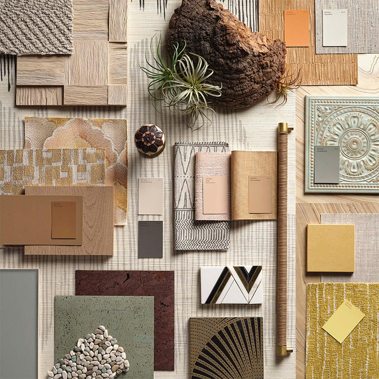 Accessible Beige SW 7036, Evergreen Fog SW 9130, Urbane Bronze SW 7048, Über Umber SW 9107, Woven Wicker SW 9104, Shoji White SW 7042, Chartreuse SW 0073, Bakelite Gold SW 6368, Beige SW 2859.