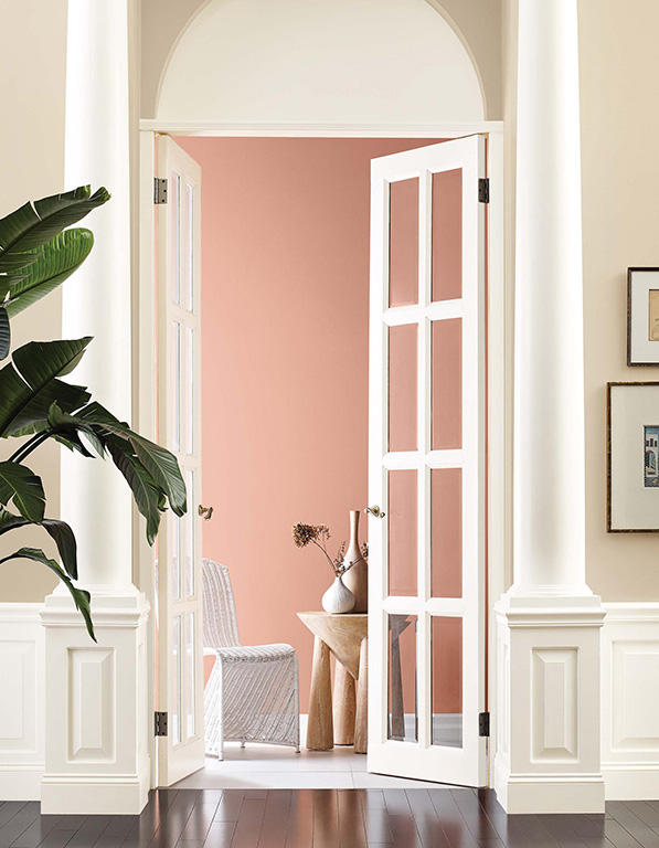 Rose Tan SW 0069, Natural Linen SW 9109, High Reflective White SW 7757, Rosemary SW 6187, Felted Wool SW 9171, Cucuzza Verde SW 9038, Lite Lavender SW 6554, Rosé SW 6290, Dynamo SW 6841.