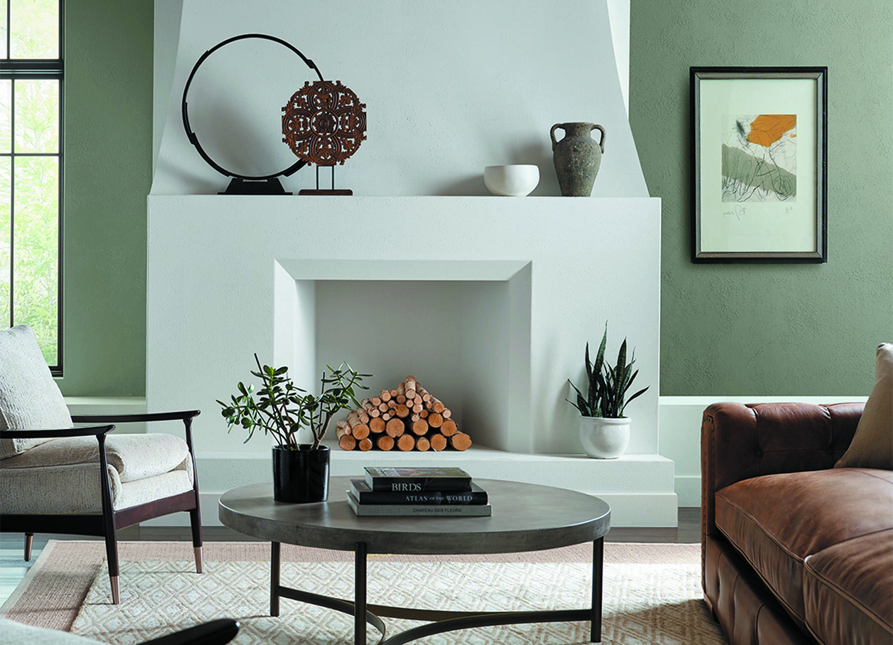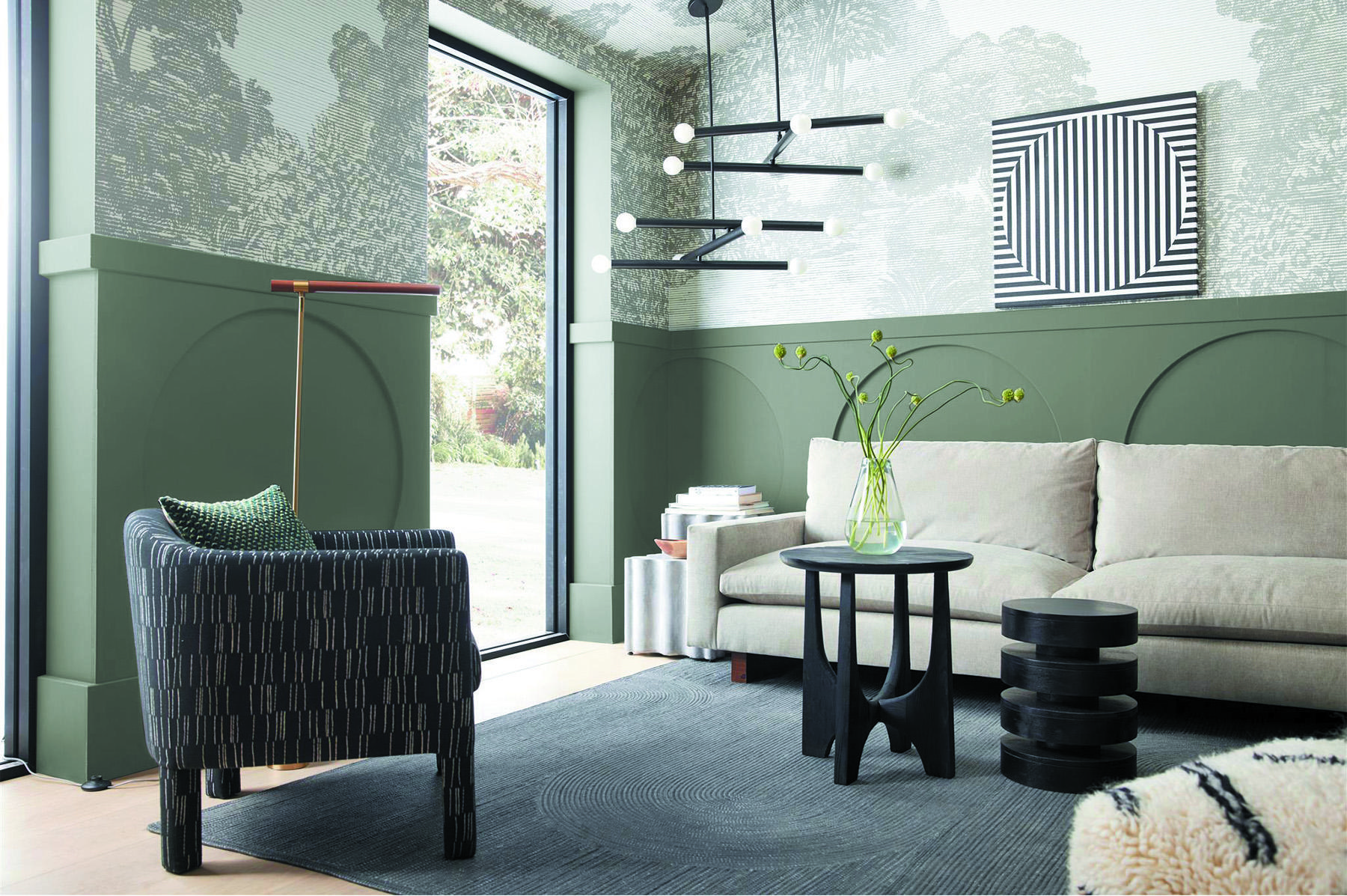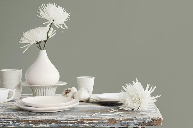 Evergreen Fog — это естественный цвет великолепно сочетающийся с текстилем, натуральным камнем и деревом, создаёт экологичный дизайн интерьера.
