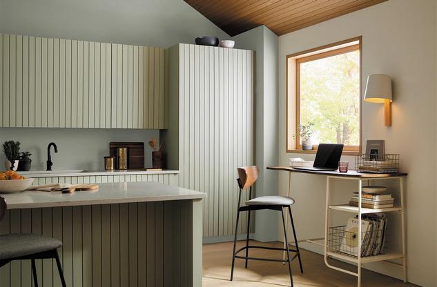 Evergreen Fog SW 9130 цвет 2022 года в интерьере от Sherwin-Williams
