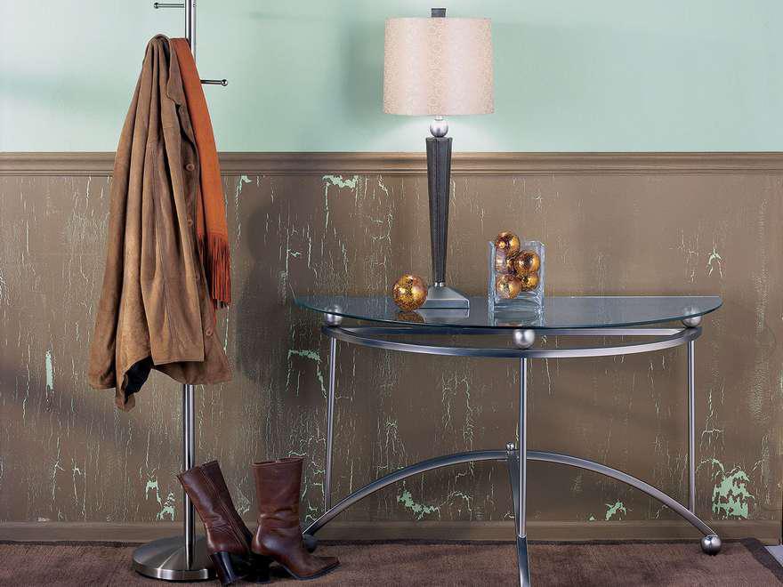 В качестве финишного слоя вместо латексной краски можно использовать водный акриловый или полиуретановый лак, который в силу своей прозрачности покроется невидимыми трещинами. В этом случае трещины выделяются глизалями на масляной основе или декоративными металликами.