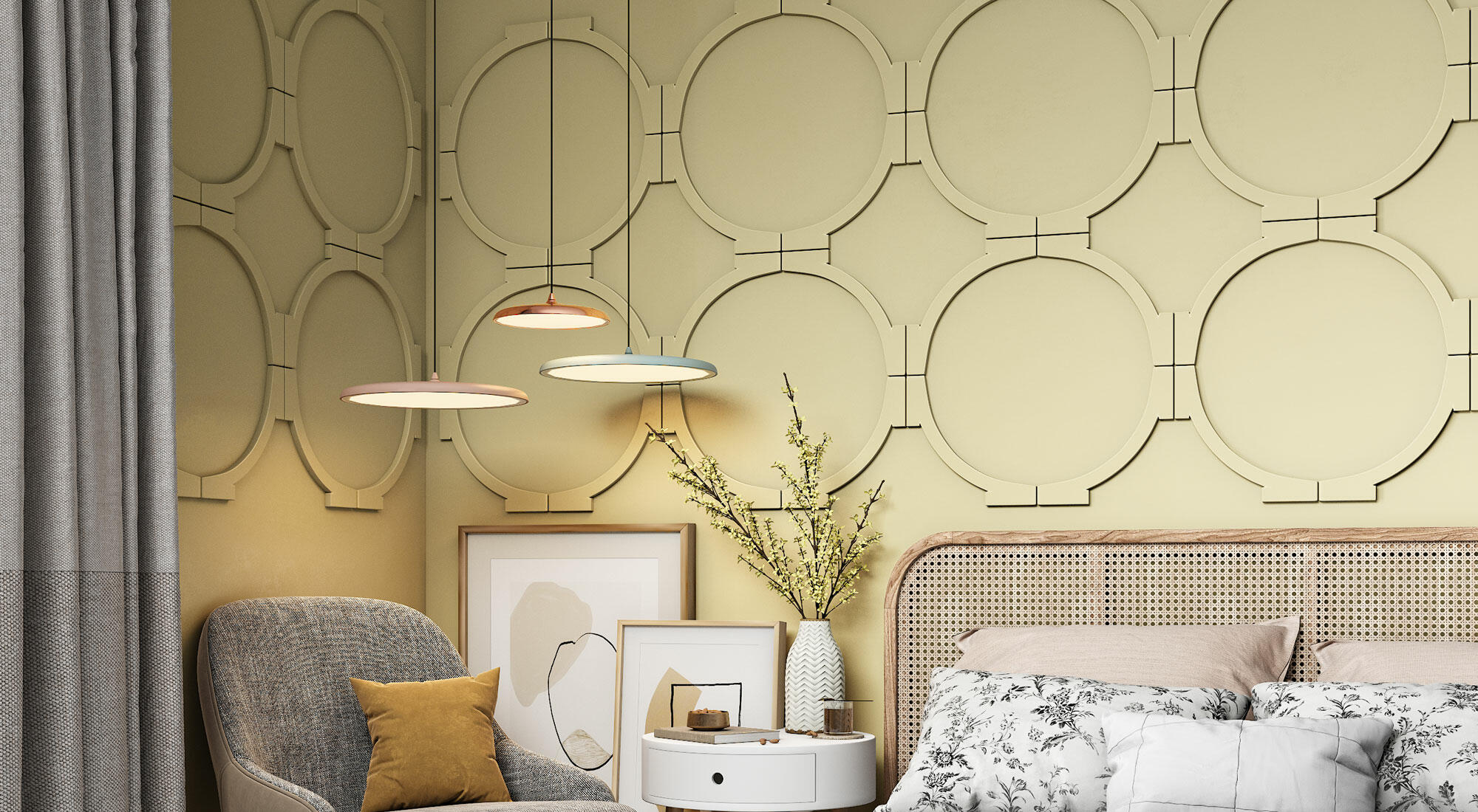 Орнаментами можно декорировать не только стены и потолки. Вы можете сделать эффектный акцент на любой мебели или элементах декора, которые присутствуют в помещении.