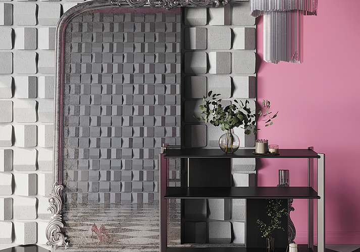 Декоративная панель на стену в сочетании с карнизами, плинтусами, молдингами позволит создать изысканный и законченный вид интерьера.