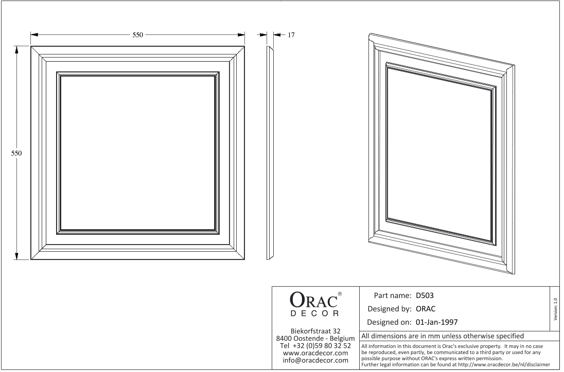 D503 накладная панель от бельгийского производителя лепного декора ORAC DÉCOR (Oрак Декор). Для отделки внутри и снаружи помещений.