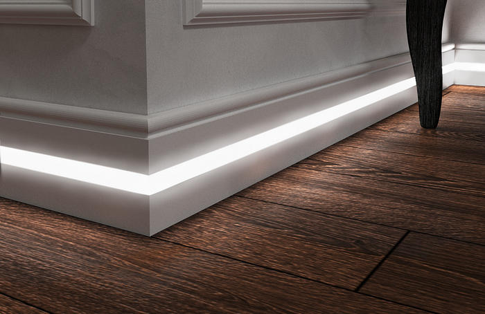 У плинтуса PN030 LED есть пазы, предназначенные для размещения светодиодной ленты.