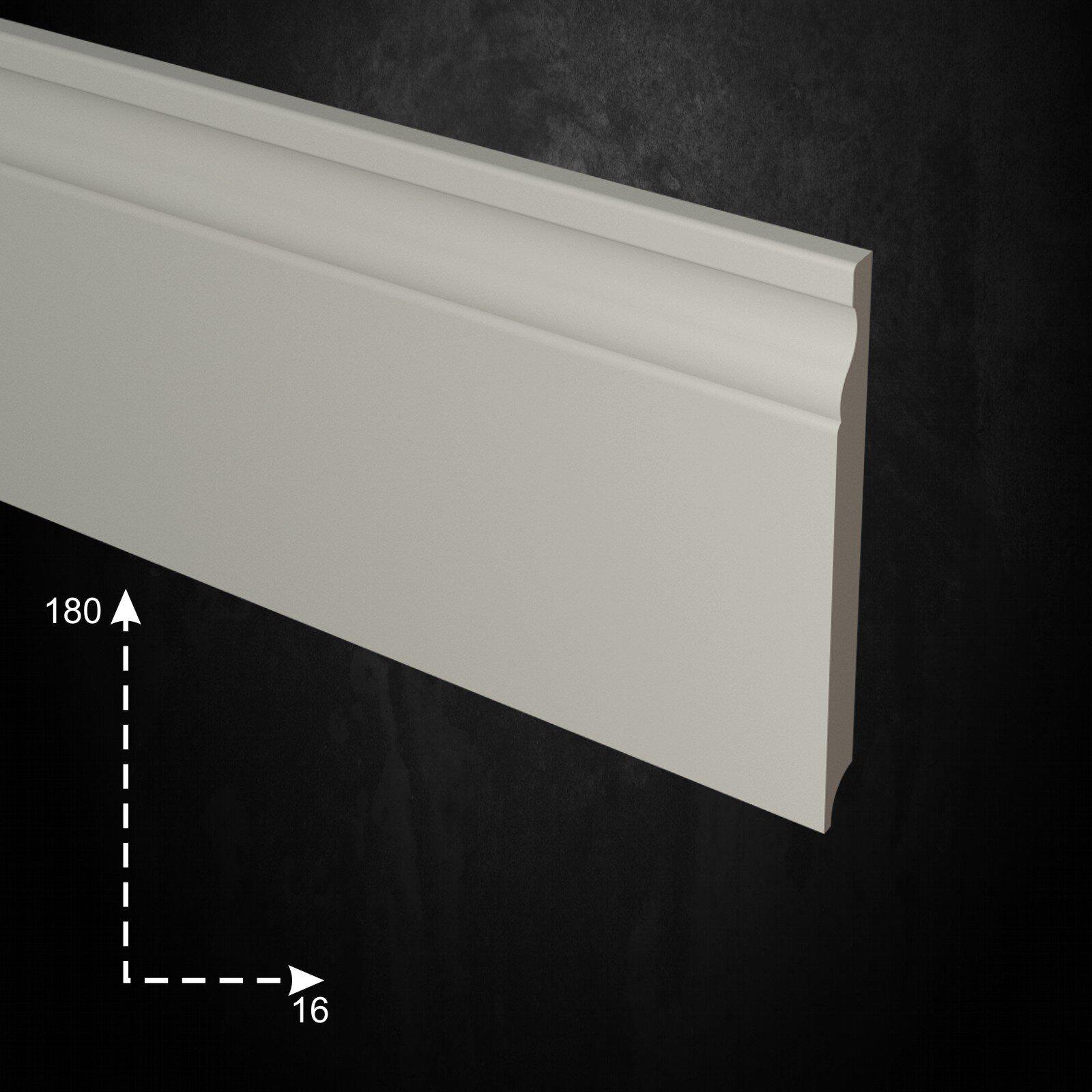 Плинтус напольный МДФ под покраску производится из экологически чистого сырья для оформления интерьеров. Профиль длиной 2000 мм загрунтован и покрашен в белый цвет, готов к установке. Возможно окрашивание плинтуса в различные цвета от завода изготовителя. Плинтус МДФ красится интерьерными красками и эмалями без предварительной грунтовки и подготовки. Плинтус крепится на подготовленную сухую, обезжиренную поверхность. Для монтажа используйте монтажный клей Evrowood.