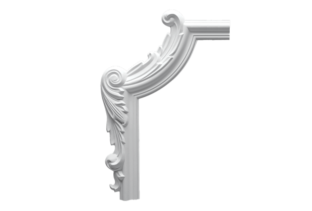 Угловой элемент 1.52.290 используется для декорирования стен, потолков и дверей в комплексе с молдингом: 1.51.301.