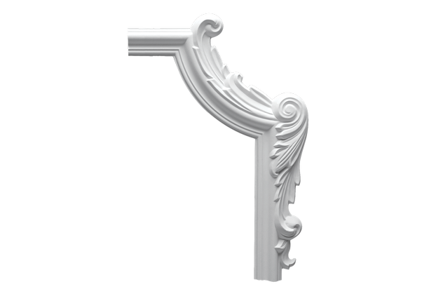 Угловой элемент 1.52.293 используется для декорирования стен, потолков и дверей в комплексе с молдингом: 1.51.301.