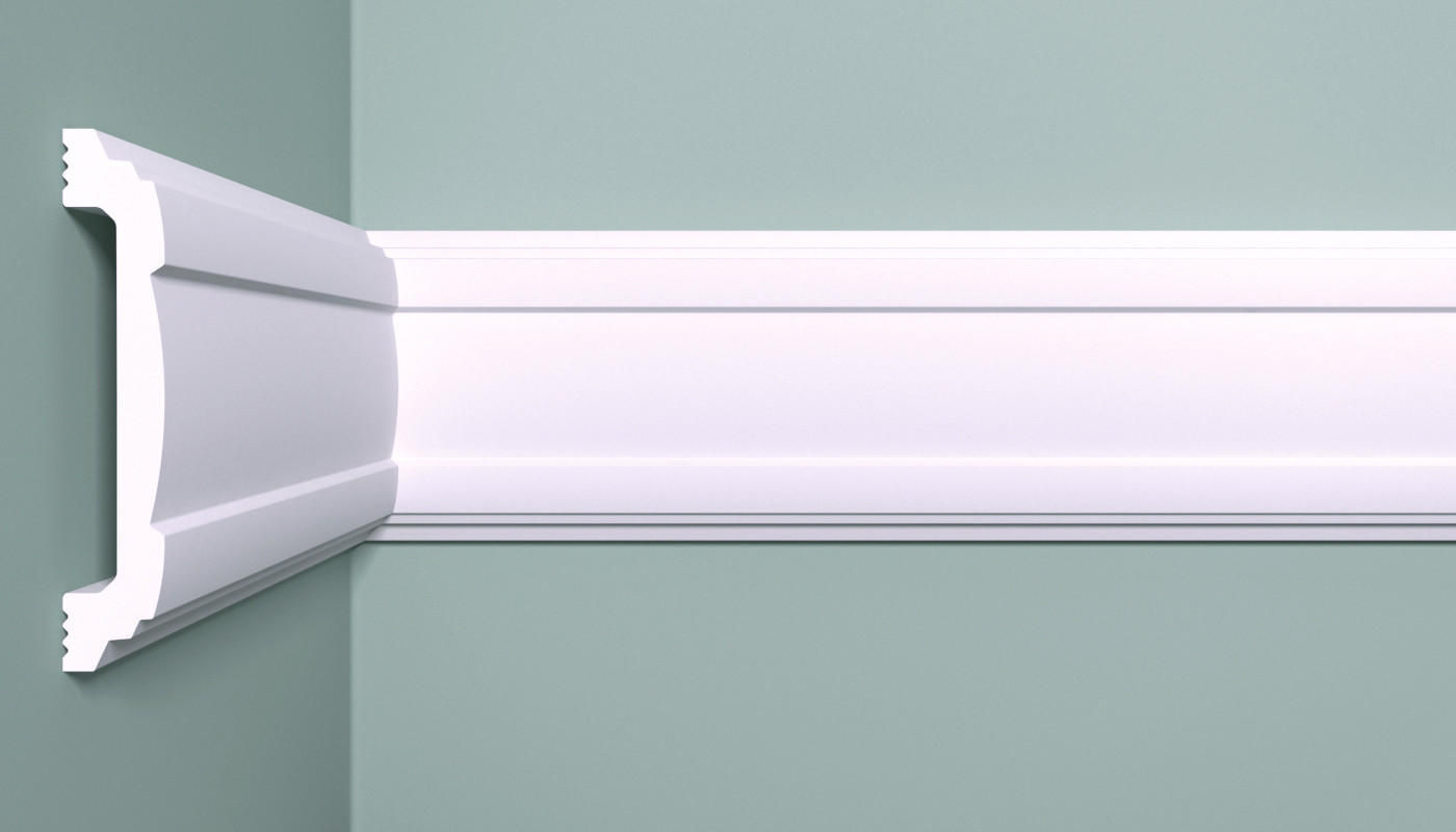 Молдинг произведен из полистирола высокой плотности (XPS), предназначен для внутренней отделки жилых и коммерческих помещений. Профили загрунтованы полиуретановой грунтовкой на водной основе и готовы к окрашиванию. Для покраски настенных молдингов в различные цвета, краску можно выбрать здесь!