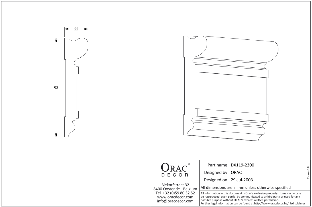 DX119−2300 молдинг из дюрополимера от бельгийского производителя лепного декора ORAC DÉCOR (Oрак Декор).