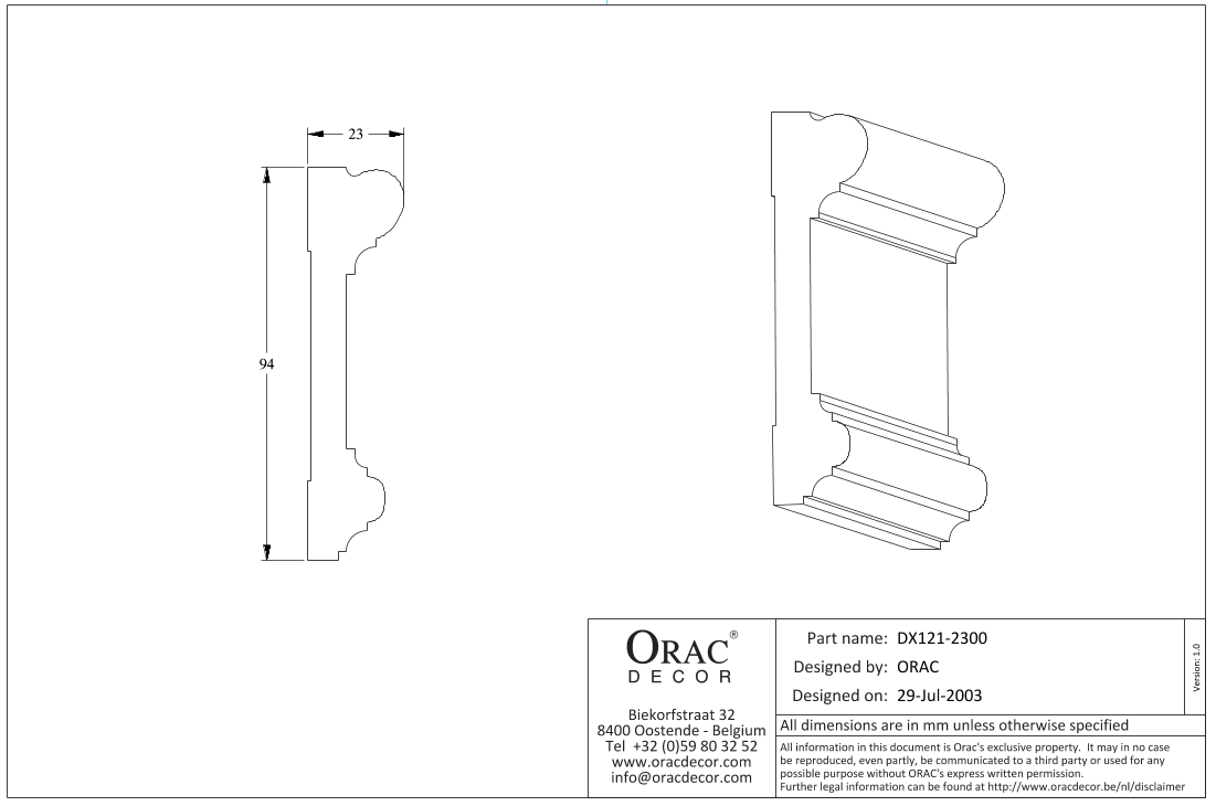 DX121−2300 молдинг из дюрополимера от бельгийского производителя лепного декора ORAC DÉCOR (Oрак Декор).
