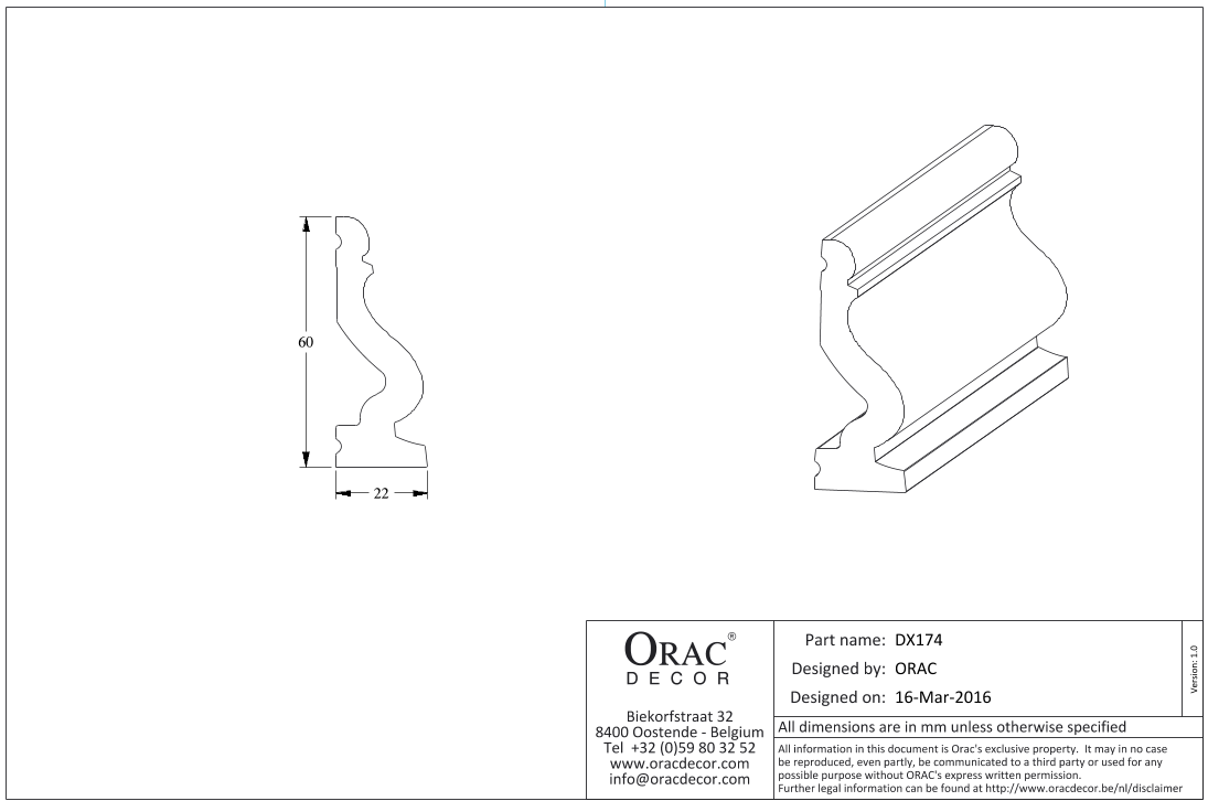DX174−2300 молдинг из дюрополимера от бельгийского производителя лепного декора ORAC DÉCOR (Oрак Декор).