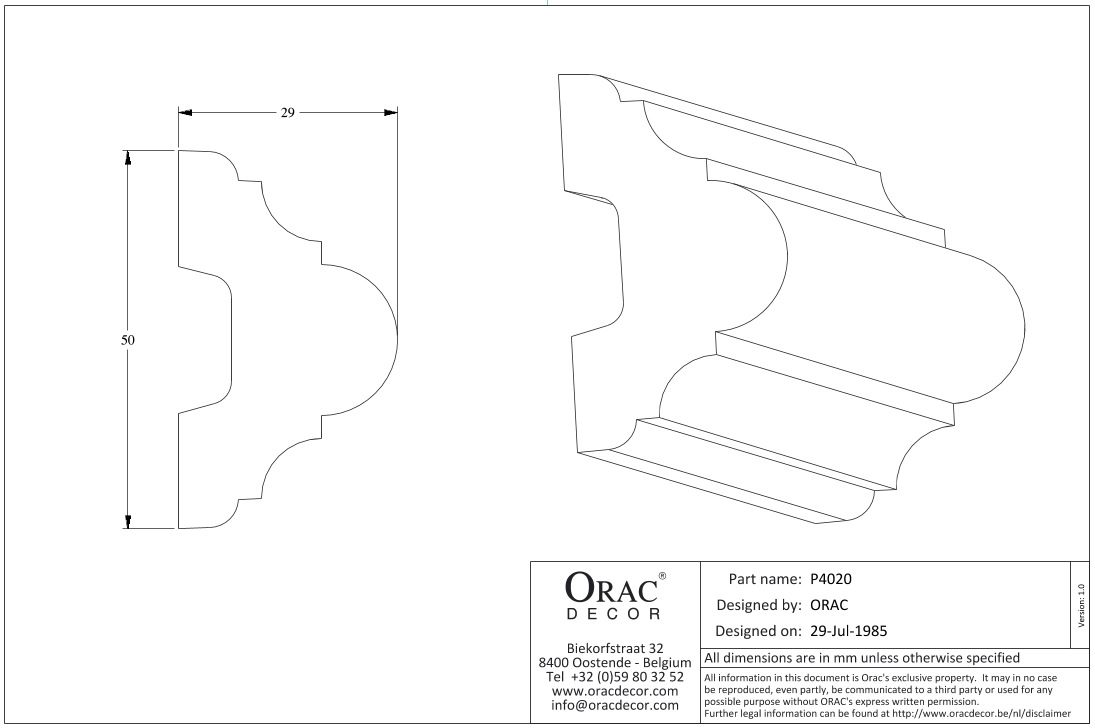 P4020 молдинг из полиуретана от бельгийского производителя лепного декора ORAC DÉCOR (Oрак Декор).