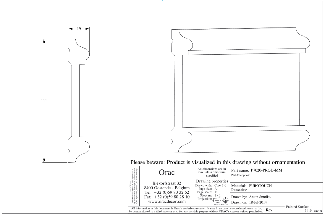 P7020 молдинг из полиуретана от бельгийского производителя лепного декора ORAC DÉCOR (Oрак Декор).