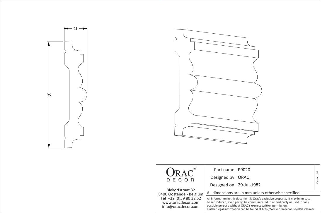P9020 молдинг из полиуретана от бельгийского производителя лепного декора ORAC DÉCOR (Oрак Декор).