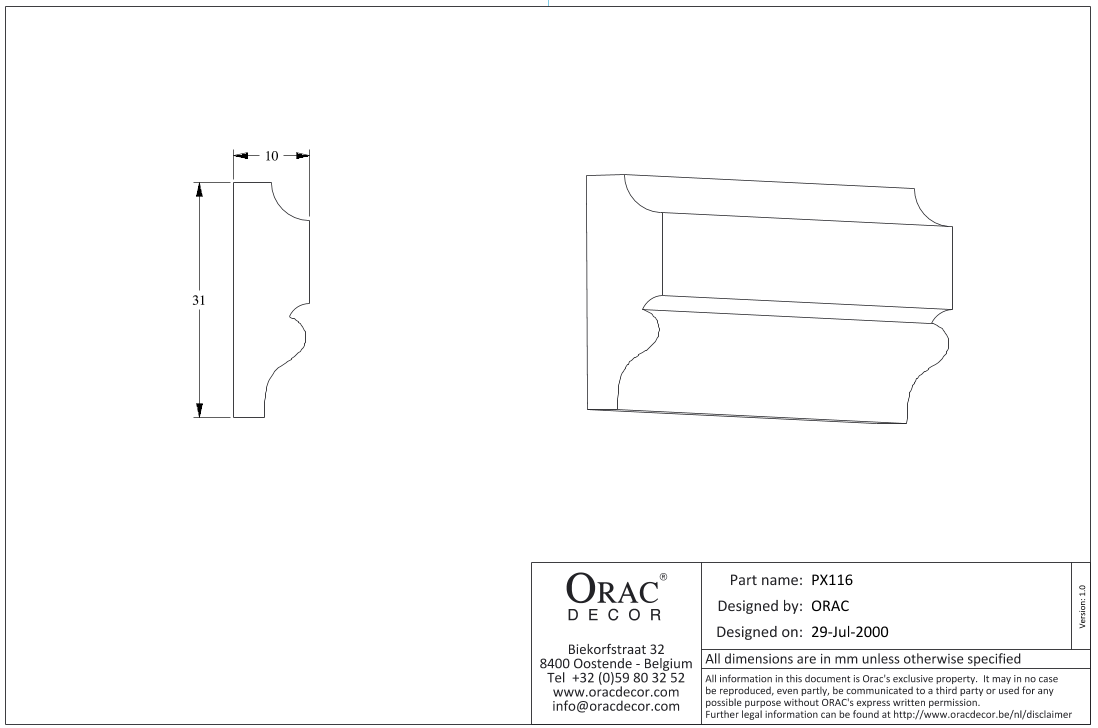 PX116 молдинг из дюрополимера от бельгийского производителя лепного декора ORAC DÉCOR (Oрак Декор).