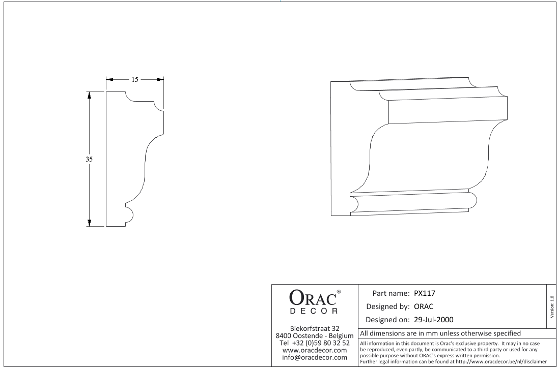 PX117 молдинг из дюрополимера от бельгийского производителя лепного декора ORAC DÉCOR (Oрак Декор).