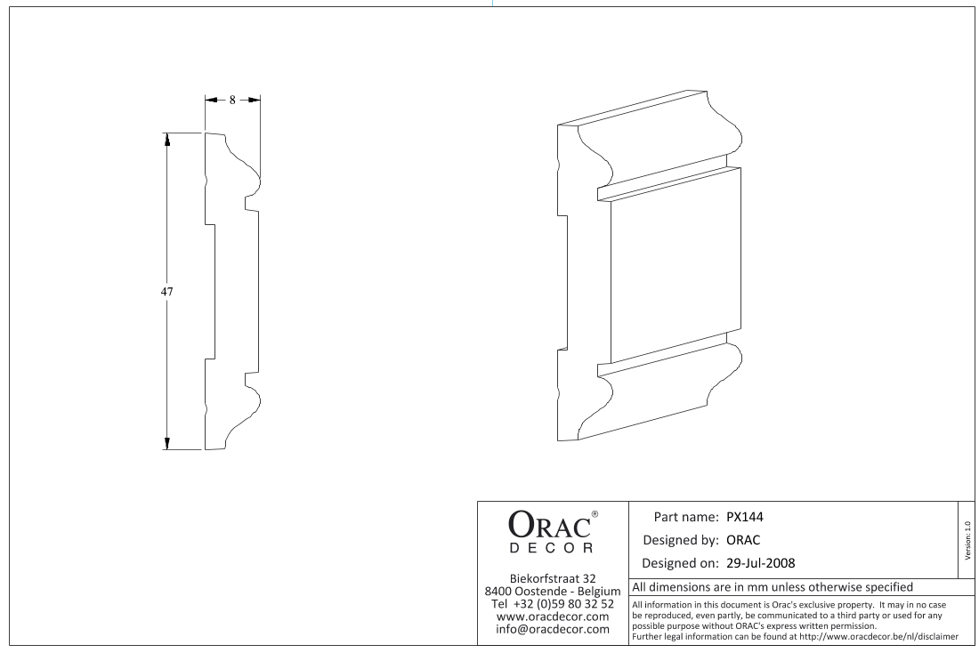 PX144 молдинг из дюрополимера от бельгийского производителя лепного декора ORAC DÉCOR (Oрак Декор).