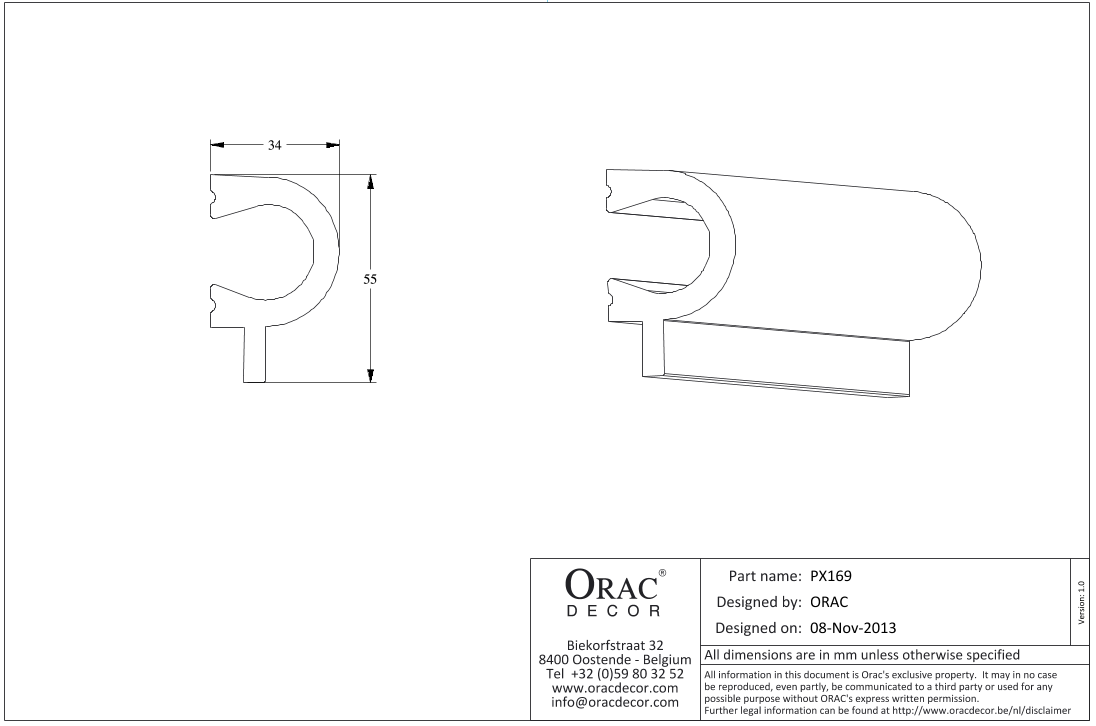 PX169 молдинг из дюрополимера от бельгийского производителя лепного декора ORAC DÉCOR (Oрак Декор).