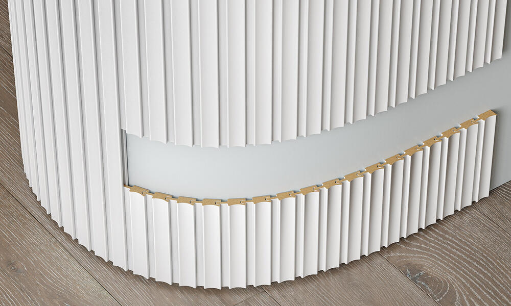 Перед вами инновационное решение для облицовки поверхностей с изгибами — гибкие рейки с замком шарнирного типа. Это уникальное соединение позволяет легко регулировать угол между рейками, обеспечивая идеальное соответствие любым формам.