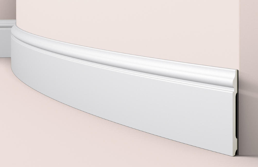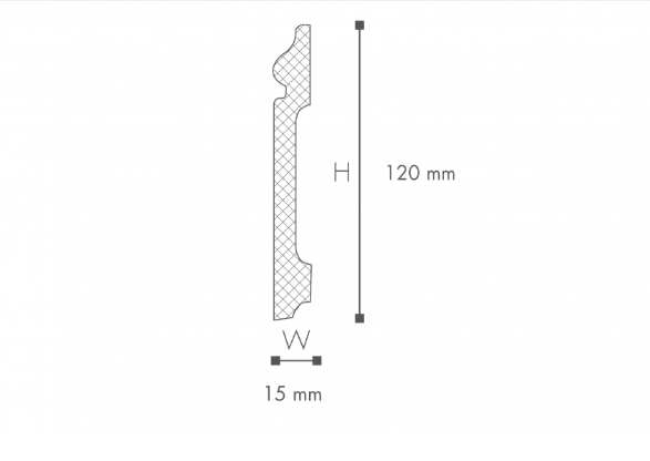 Плинтус под покраску 120 мм. Экструдированный полистирол высокой плотности (HDPS), гомогенный пенопласт с закрытыми мелкими ячейками, белого цвета. Не содержит ХФУ (ХлорФторУглерода).