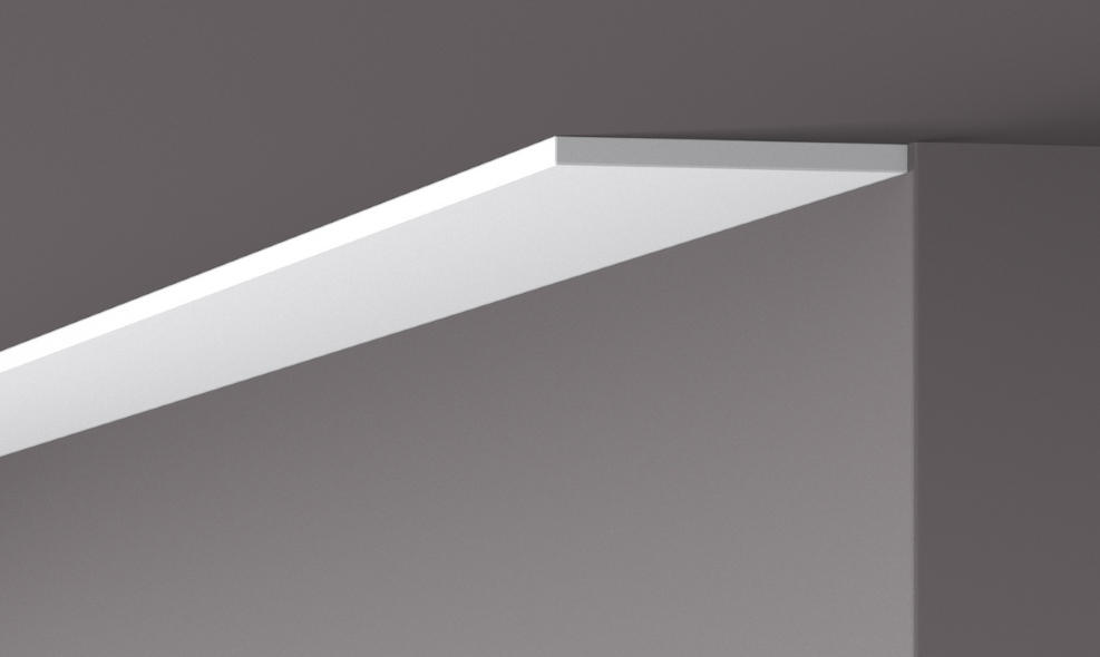 Плинтус плоский наполный под покраску 100 мм. Экструдированный полистирол высокой плотности (HDPS), гомогенный пенопласт с закрытыми мелкими ячейками, белого цвета. Не содержит ХФУ (ХлорФторУглерода).