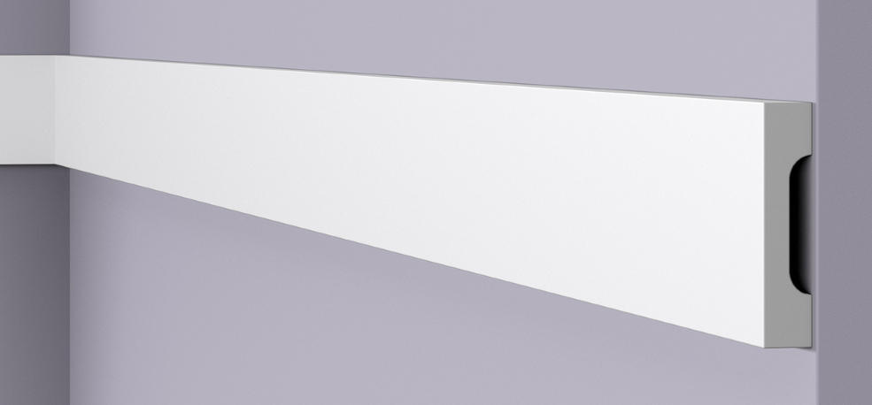 Плинтус под покраску 70 мм. Экструдированный полистирол высокой плотности (HDPS), гомогенный пенопласт с закрытыми мелкими ячейками, белого цвета. Не содержит ХФУ (ХлорФторУглерода)