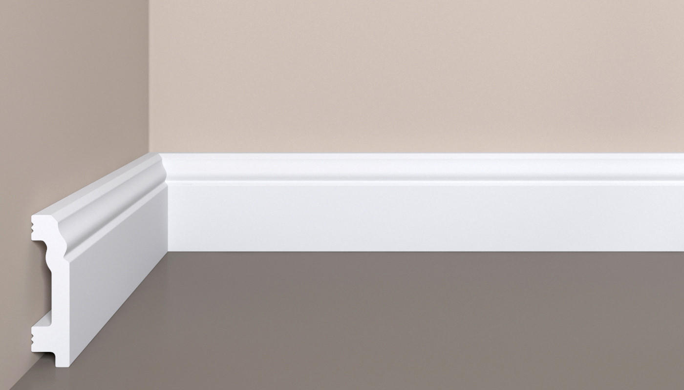 Напольный плинтус произведен из полистирола высокой плотности (XPS), предназначен для внутренней отделки жилых и коммерческих помещений. Профили загрунтованы полиуретановой грунтовкой на водной основе и готовы к окрашиванию. Для покраски плинтусов в различные цвета, краску можно выбрать здесь!