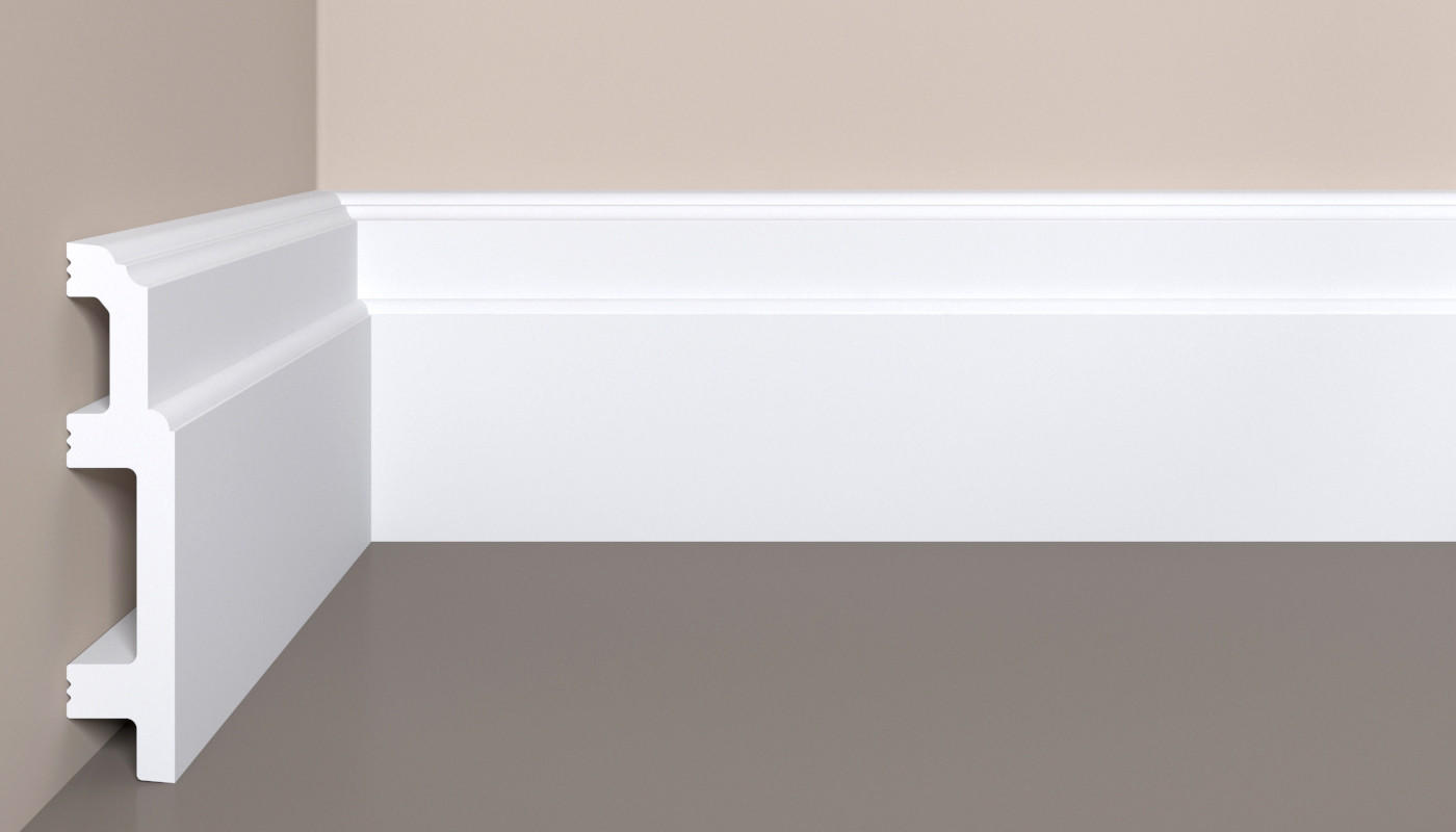 Напольный плинтус произведен из полистирола высокой плотности (XPS), предназначен для внутренней отделки жилых и коммерческих помещений. Профили загрунтованы полиуретановой грунтовкой на водной основе и готовы к окрашиванию. Для покраски плинтусов в различные цвета, краску можно выбрать здесь!