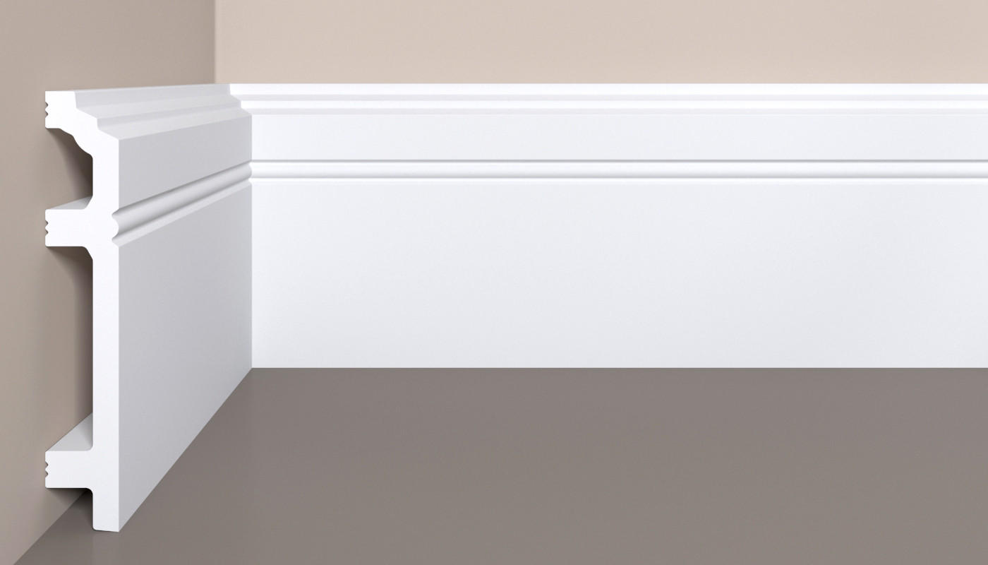 Напольный плинтус произведен из полистирола высокой плотности (XPS), предназначен для внутренней отделки жилых и коммерческих помещений. Профили загрунтованы полиуретановой грунтовкой на водной основе и готовы к окрашиванию. Для покраски плинтусов в различные цвета, краску можно выбрать здесь!