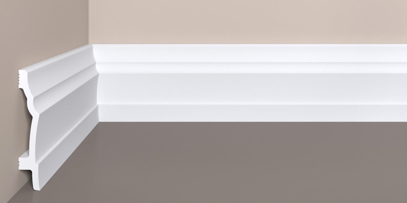 Напольный плинтус произведен из полистирола высокой плотности (XPS), предназначен для внутренней отделки жилых и коммерческих помещений. Профили загрунтованы полиуретановой грунтовкой на водной основе и готовы к окрашиванию. Для покраски плинтусов в различные цвета, краску можно выбрать здесь!