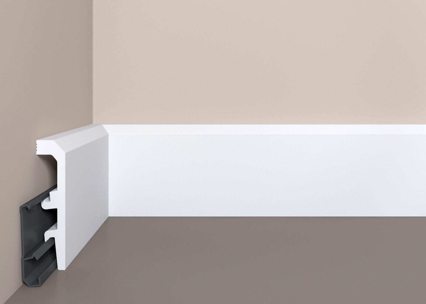 Напольный плинтус произведен из полистирола высокой плотности (XPS), предназначен для внутренней отделки жилых и коммерческих помещений. Профили загрунтованы полиуретановой грунтовкой на водной основе и готовы к окрашиванию. Для покраски плинтусов в различные цвета, краску можно выбрать здесь!