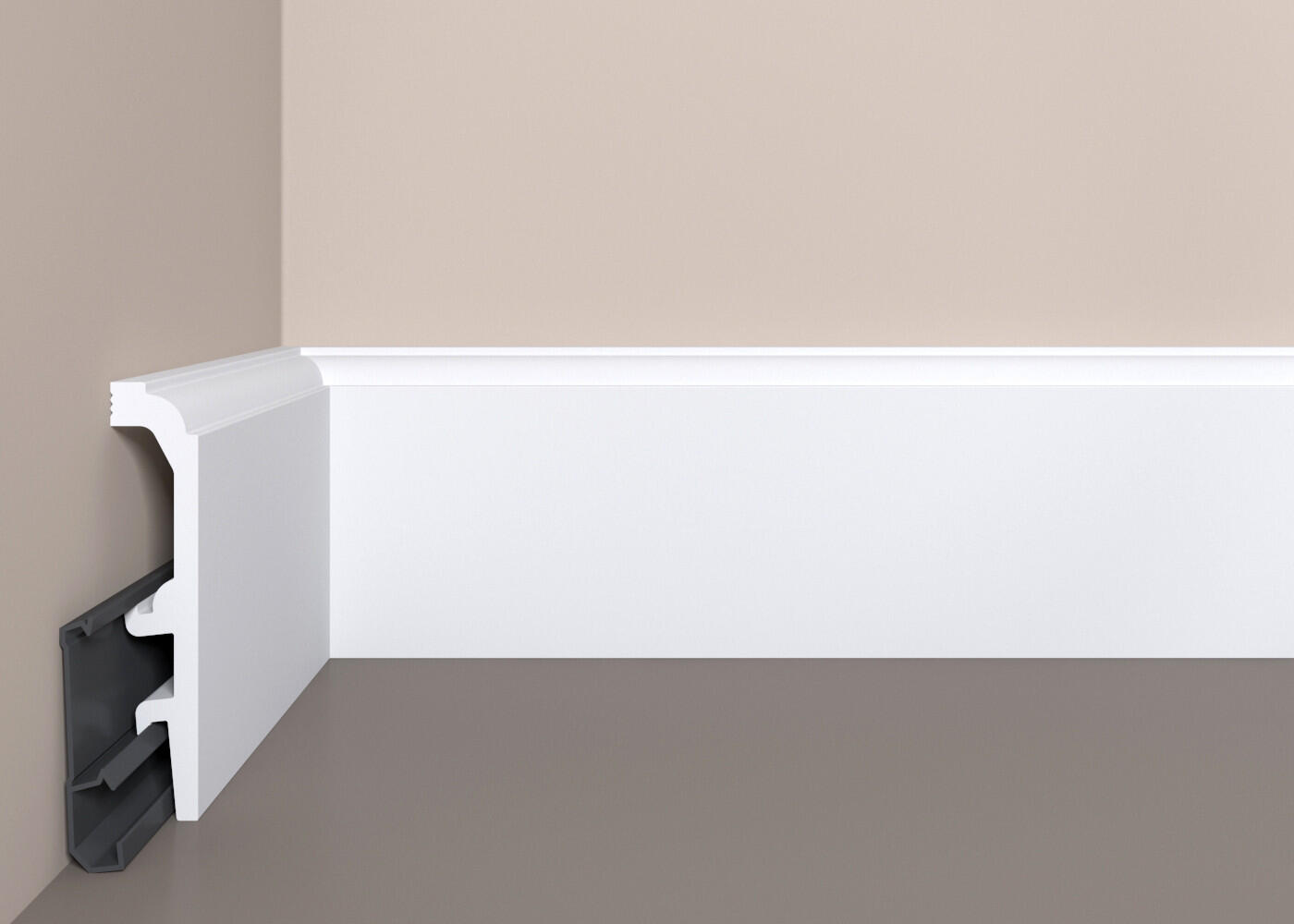 Напольный плинтус произведен из полистирола высокой плотности (XPS), предназначен для внутренней отделки жилых и коммерческих помещений. Профили загрунтованы полиуретановой грунтовкой на водной основе и готовы к окрашиванию. Для покраски плинтусов в различные цвета, краску можно выбрать здесь!