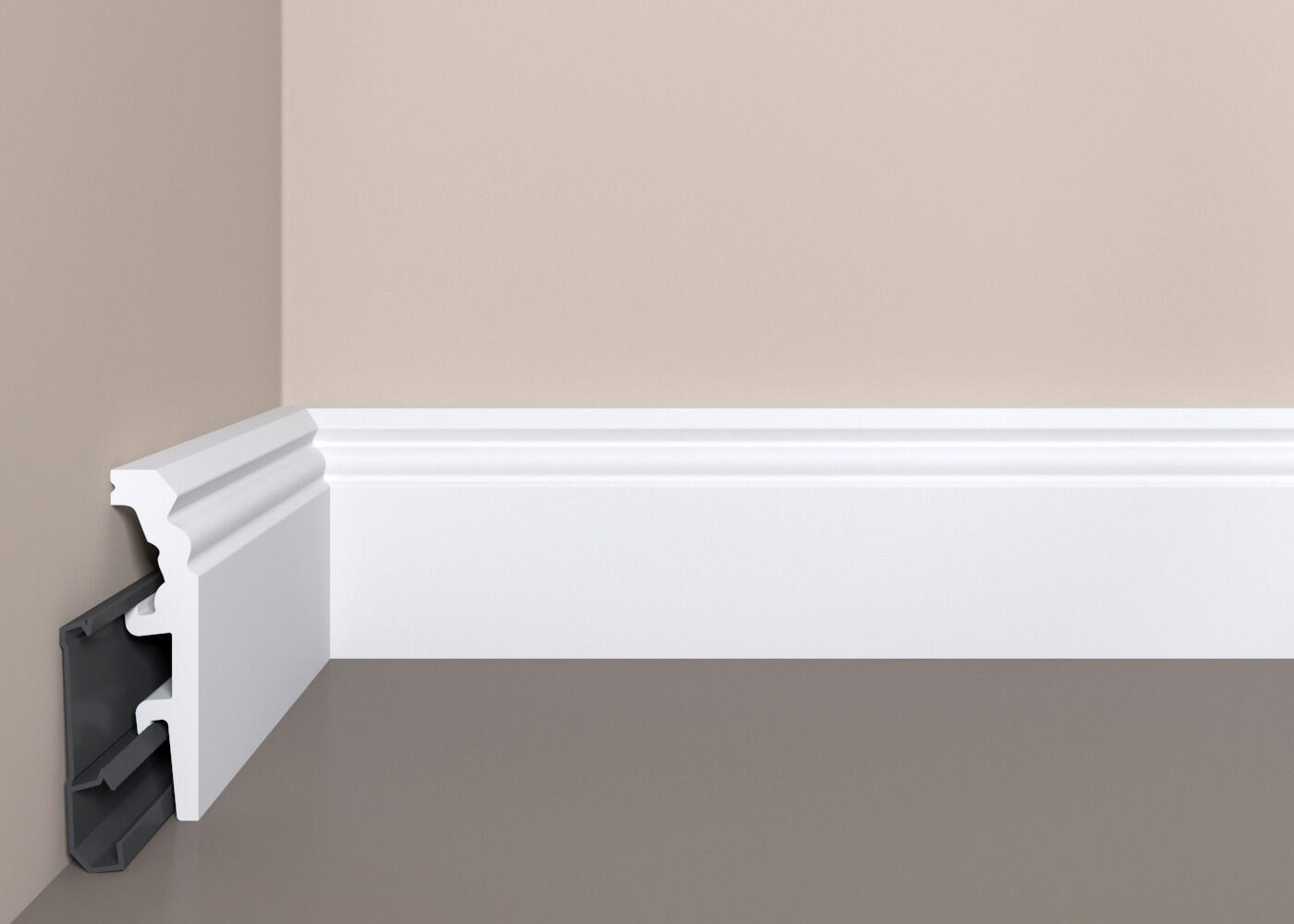 Напольный плинтус произведен из полистирола высокой плотности (XPS), предназначен для внутренней отделки жилых и коммерческих помещений. Профили загрунтованы полиуретановой грунтовкой на водной основе и готовы к окрашиванию. Для покраски плинтусов в различные цвета, краску можно выбрать здесь!