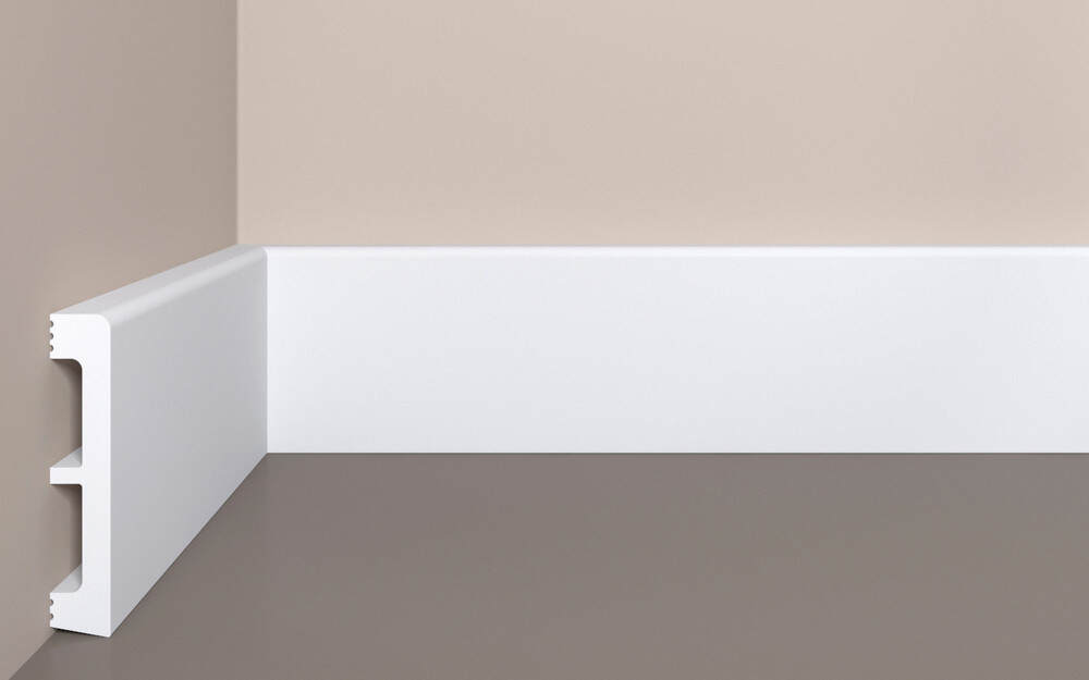 Напольный плинтус произведен из полистирола высокой плотности (XPS), предназначен для внутренней отделки жилых и коммерческих помещений. Профили загрунтованы полиуретановой грунтовкой на водной основе и готовы к окрашиванию. Для покраски плинтусов в различные цвета, краску можно выбрать здесь!
