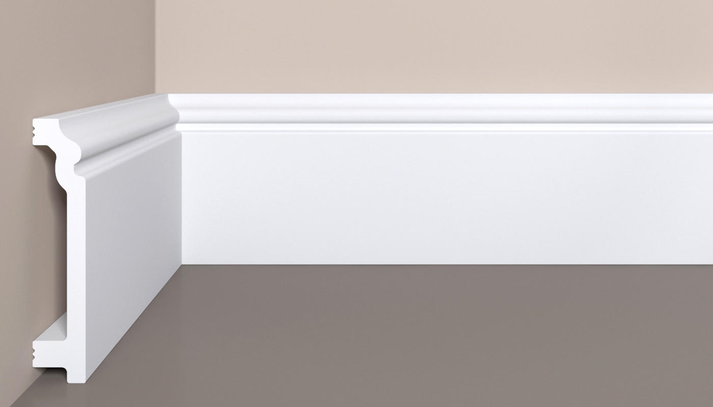 Напольный плинтус произведен из полистирола высокой плотности (XPS), предназначен для внутренней отделки жилых и коммерческих помещений. Профили загрунтованы полиуретановой грунтовкой на водной основе и готовы к окрашиванию. Для покраски плинтусов в различные цвета, краску можно выбрать здесь!
