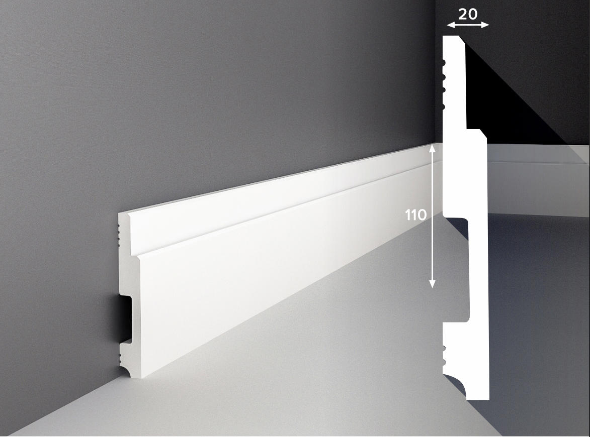 Плинтус под покраску из экополимера решает сразу несколько вопросов, связанных с выбором этого элемента интерьера. Разнообразные сечения помогут подобрать плинтус под конкретный тип декора, а возможность его окрашивания в любой цвет, удачно дополнит любое цветовое и стилистическое решение.