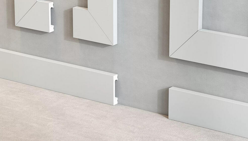 Многофункциональный профиль под покраску из экополимера решает сразу несколько вопросов, связанных с выбором этого элемента интерьера. Разнообразные сечения помогут подобрать плинтус под конкретный тип декора.