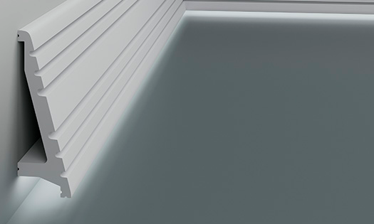 Плинтус под покраску из композитного материала. Отлично стыкуется с полиуретановыми аналогами.