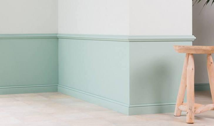 - Специальная краска для плинтуса Summum 3100 Satin Finish is a Zero VOC — преимущества этой краски в том, что она превосходно моется губкой с моющими средствами (можно мыть уже через 15 дней после покраски), обладает повышенной твердостью покрытия (ударопрочная, не царапается), легко наносится (кистью, валиком, краскопультом) и ложится без использования дополнительного адгезионного грунта. Одной кварты (0,9 л.) в среднем хватает на 5−5,5 м² окрашиваемой поверхности в два слоя.
