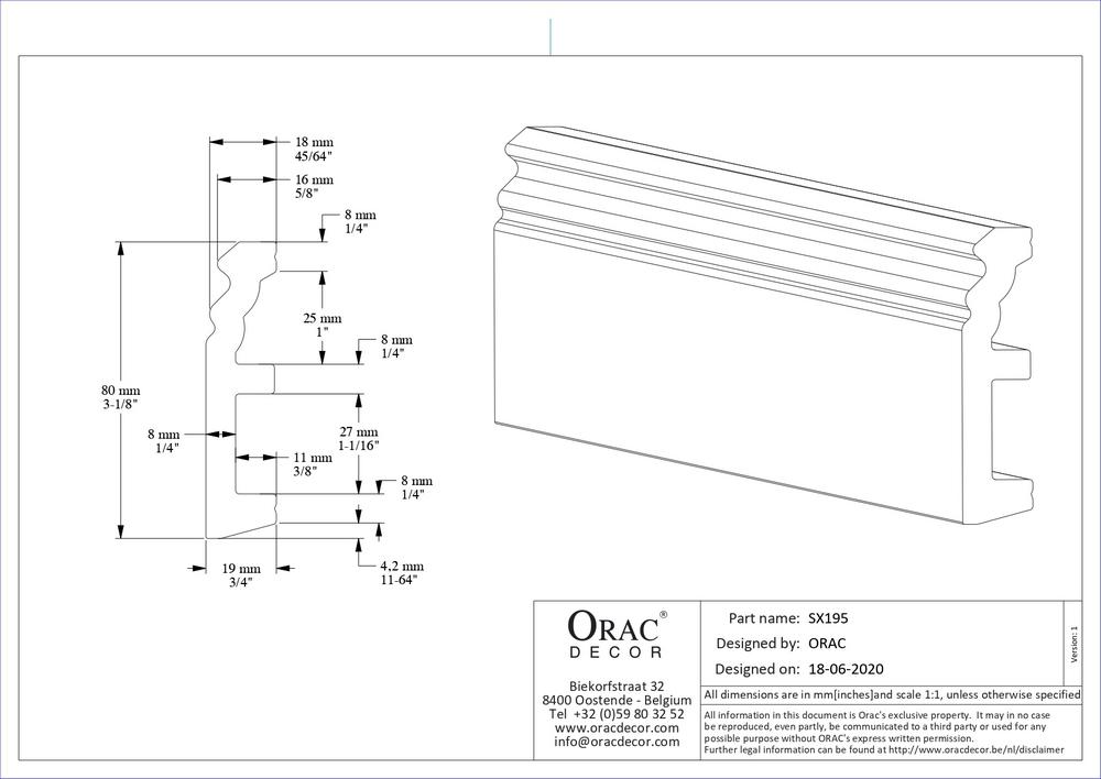 Плинус Орак Декор SX195 HAMBURG из дюрополимера под покраску от бельгийского производителя лепного декора Orac Decor. Профиль для отделки внутри и снаружи помещений.