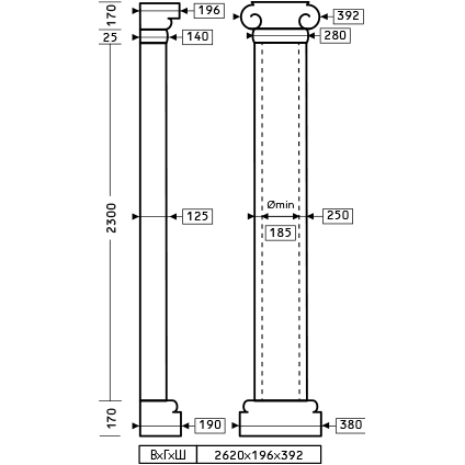 Дополнительно к базе необходимо подобрать ствол: 1.16.010, 1.16.011, капитель: 1.15.003, 1.15.004, кольцо: 1.15.100, 1.15.300.