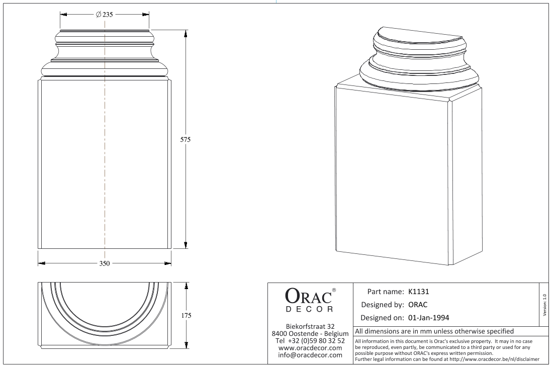 K1131 база полуколонны из полиуретана от бельгийского производителя лепного декора ORAC DÉCOR (Oрак Декор).