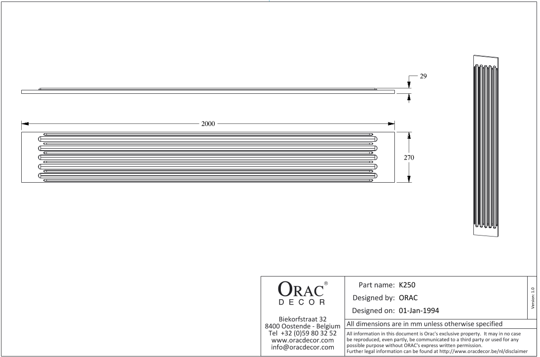 K250 пилястра из полиуретана от бельгийского производителя лепного декора ORAC DÉCOR (Oрак Декор).