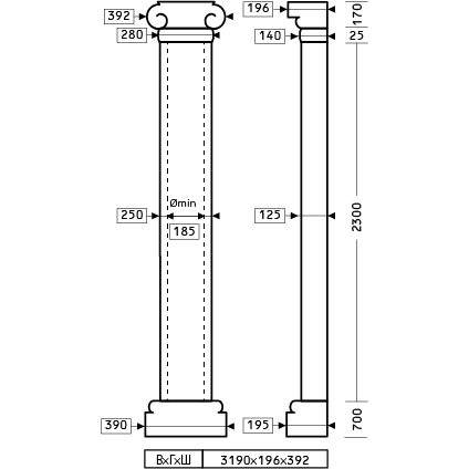 Дополнительно к капители необходимо подобрать ствол: 1.16.010, 1.16.011, базу: 1.17.100, 1.17.200, кольцо: 1.15.100.